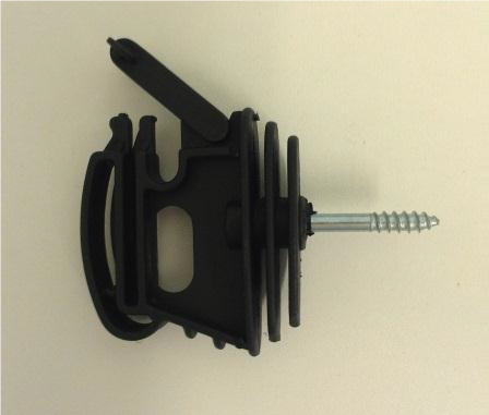As with the wooden posts, the most common line insulator that our customers prefer for woodshield posts is the F8 (see Image 1). These can be matched to the colour of the tape you have chosen. The F8 is secured to the wooden post with 2 screws (provided) that just need a cordless drill. Click here to see a spec sheet for Woodshield Posts.