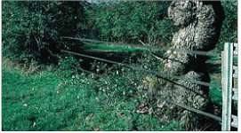 There are fence situations where it would be more appropriate to provide a safe margin for the horse along the fence by installing the tape a small distance away from the existing fence.